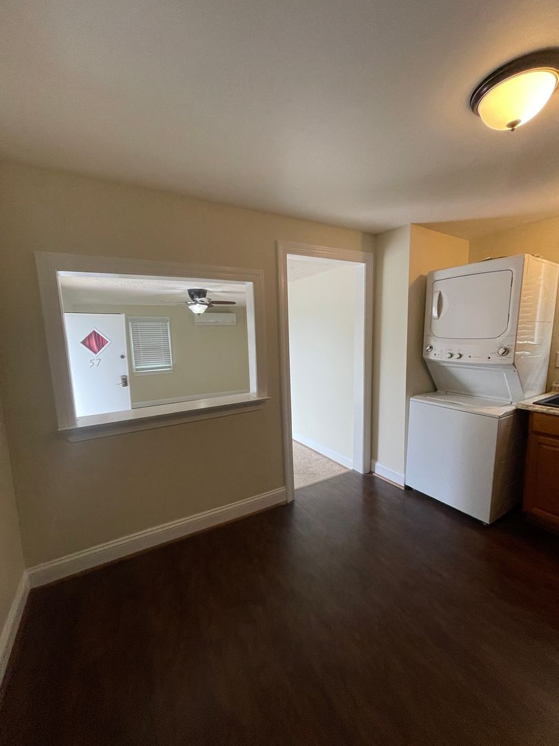 1 bedroom, 1 bath apartment located in a convenient area directly off of 522 S. Five minute drive to interstates 81, 50, 7, 11, 37. End unit with gravel parking space. Efficiency apartment boasts a mini-split air conditioning unit including central heat. A stackable washer and dryer in unit, full standing shower with built-in shelving, carpeted living space and laminate flooring in kitchen. Tenant responsible for electric. Water/Sewer, trash, lawncare included with the unit. Renting to single renter only due to small space.